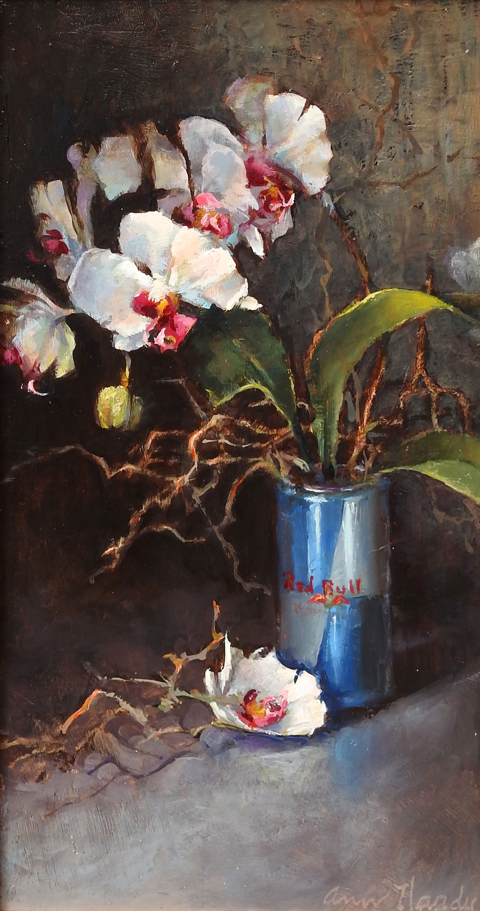 Home » Browse Artist » Still Life » Ann Hardy » Ann Hardy Orchids In Red Bull » Hi Res Image