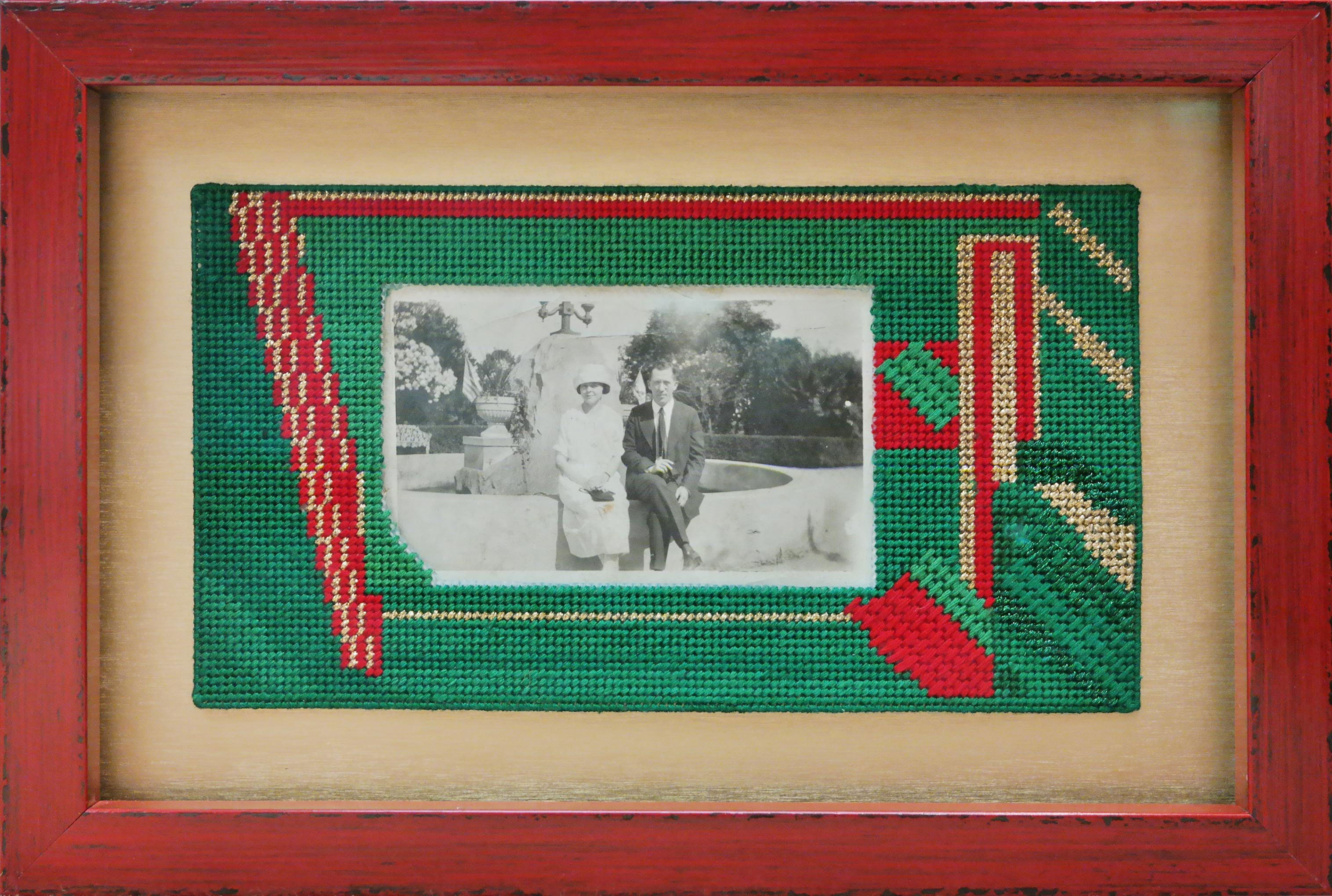 A family treasure floating on a gold mat, enhanced by a red lacquer frame.