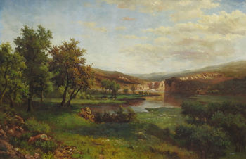 "Mountian Landscape with Lake and Cattle"
