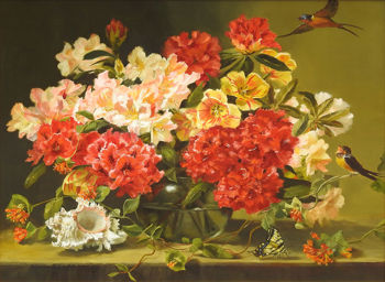 "Rhodies and Rembrandt Tulips"