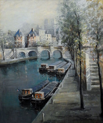 Home » Styles » Impressionism » Artists » Lucien Delarue » Lucien Delarue Barges By The Dock