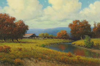 Home » Styles » Texas Landscape » Artists » Cal Gaspard » Cal Gaspard Fall Landscape With Pond