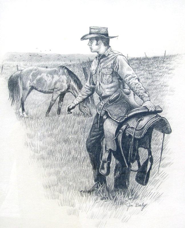 Home » Styles » Western » Artists » Jim Daly » Jim Daly Cowboy With Saddlesaddlin Up » Large Image